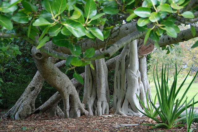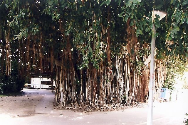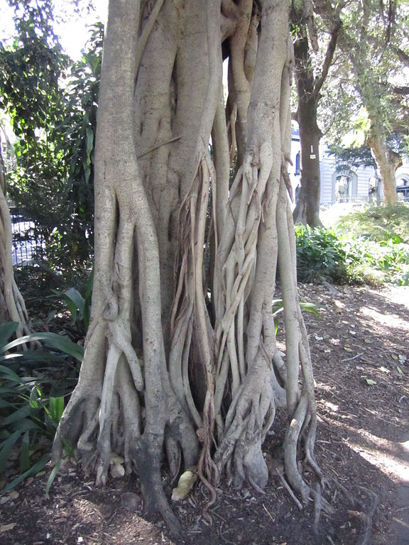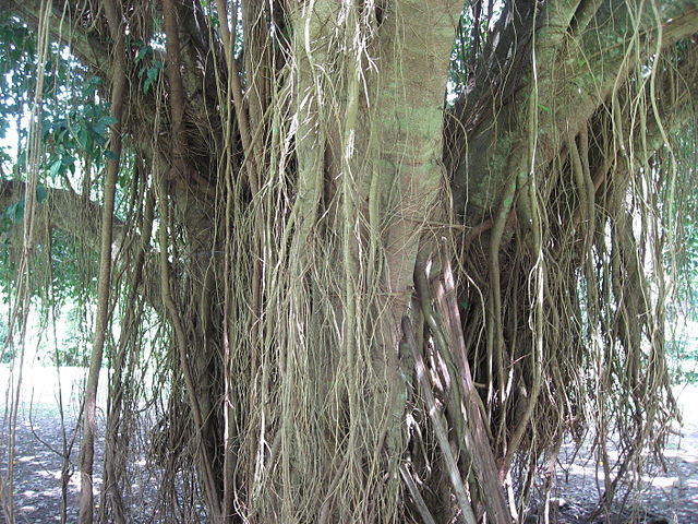 عند تقدم الشجرة في السن، تخرج منها جذور هوائية تنمو إلى الأسفل، وحين تصل إلى الأرض، تنمو إلى الأعلى في جذوع متشابكة مستقلة عن الجذع الرئيسي.