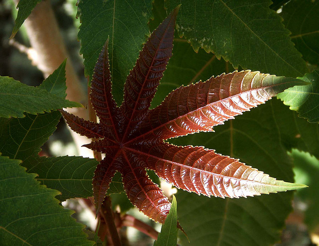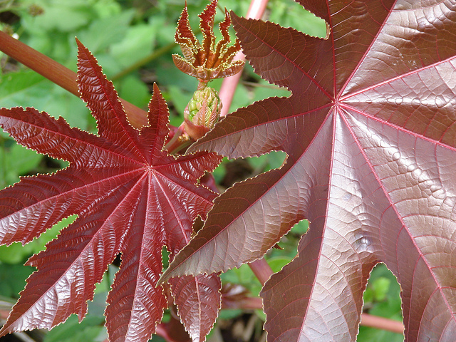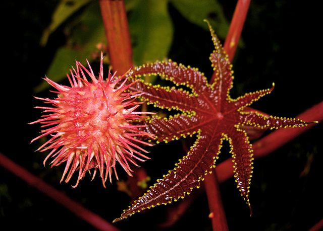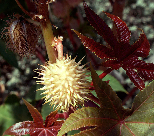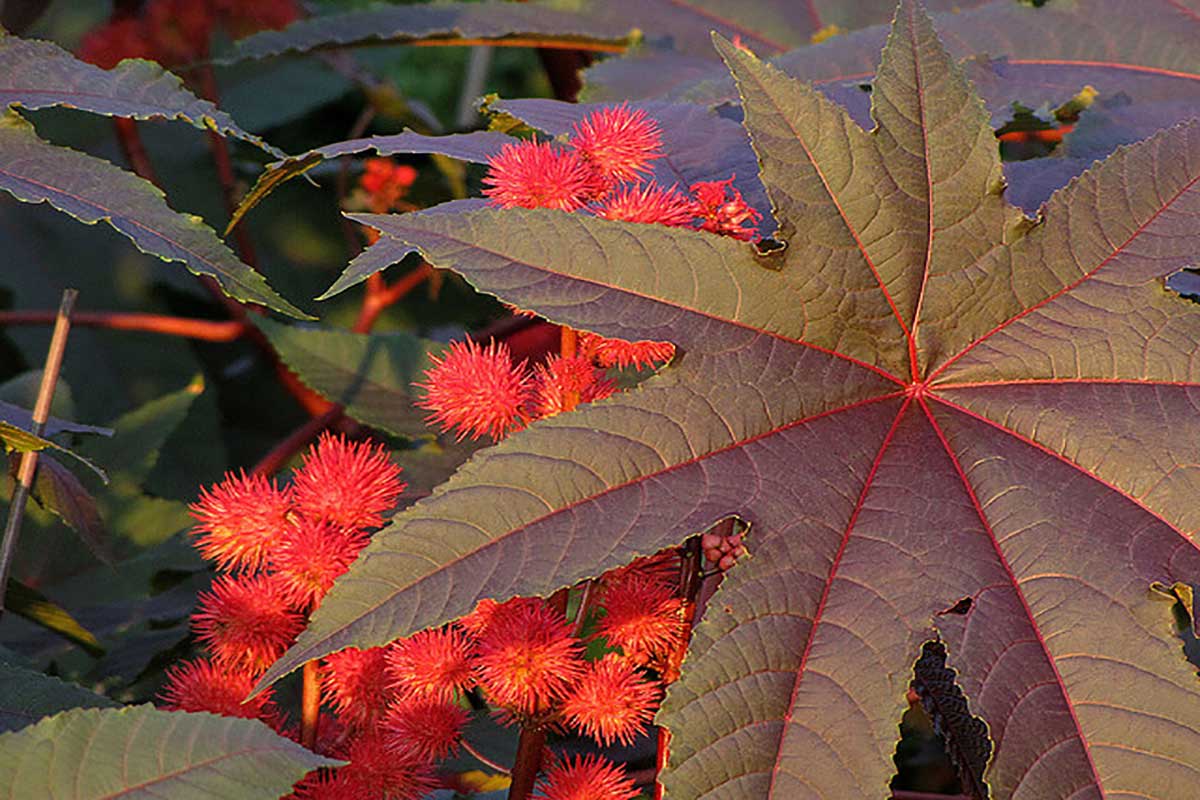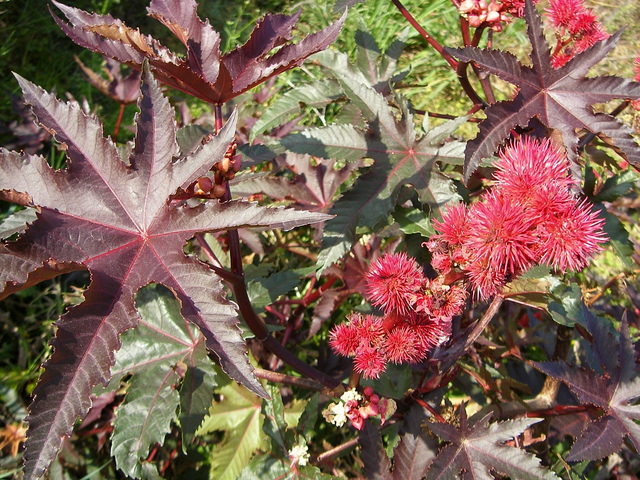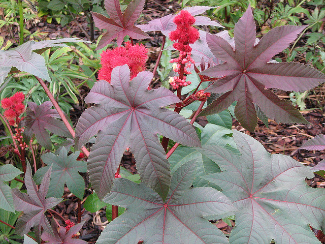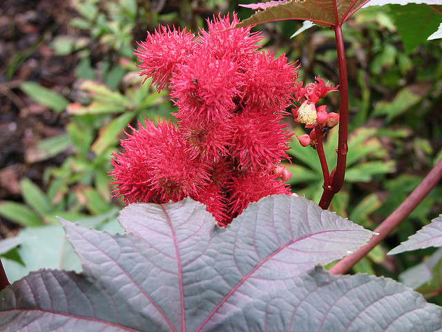الخروع شجيرة موطنها الأصلي أفريقيا الاستوائية، تزرع أساساً من أجل زيتها المعروف، أو كشجيرة زينة مبهرة لجمال أوراقها الزاهية التي تتدرج من الأحمر إلى الأخضر، وزهورها الحمراء القطنية وشكلها الزخرفي الملفت للإنتباه.