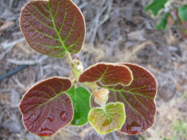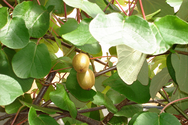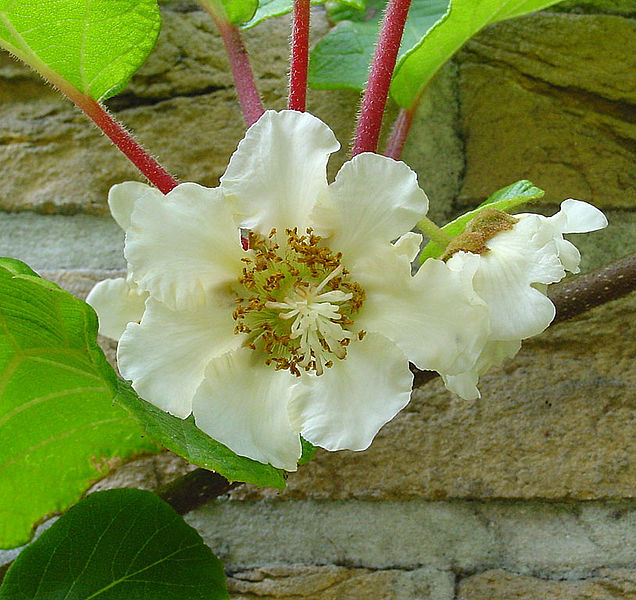 الكيوي شجيرة مستلقة تصل إلى ارتفاع كبير عند تدعيمها عمودياً، إلا أنه غالباً يتم تثبيتها على أسلاك أفقية لتسهيل قطف ثمارها. وهي شجيرة سريعة النمو لا تتطلب عناية فائقة لزراعتها وقليلة الأمراض. تزرع الكيوي للرائحة الطيبة لأزهارها وشكلها الجذاب، وهي مناسبة لمجموعة متنوعة من الاستخدامات المنزلية كسقف للأعرشة والفناءات والأسوار أو الجدران.