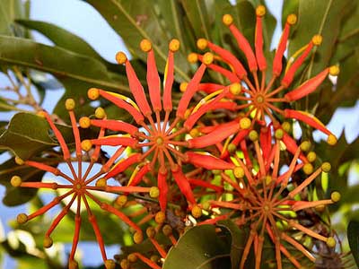 أخذت شجرة عجلة النار اسمها من تكوين ولون النورات فيها، حيث أن الزهور الصغيرة تشكل مجموعات على هيئة عجلة. انها بدون شك واحدة من اكثر أشجار استراليا (…)